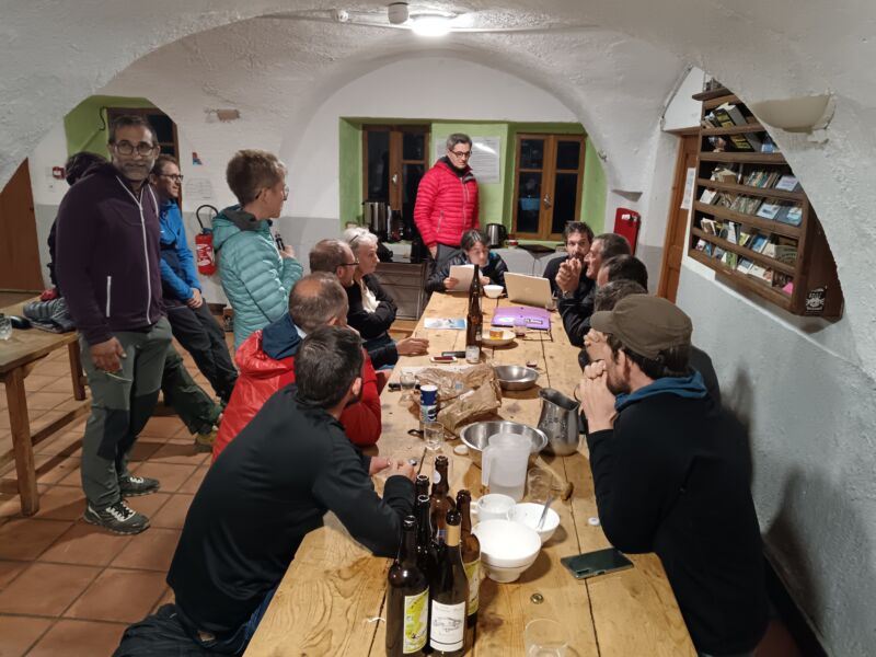 Arrivés au Gîte, on déroule l’AG pendant l’apéro (bilan annuel du club en effectif, sorties, finances et autres points divers ….), puis suivra un excellent repas concocté par la troupe.