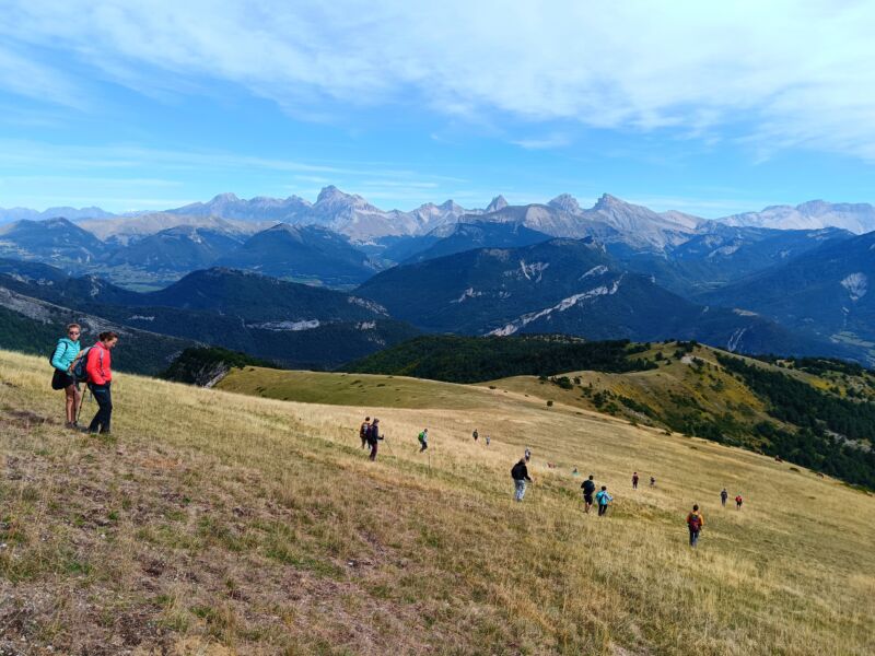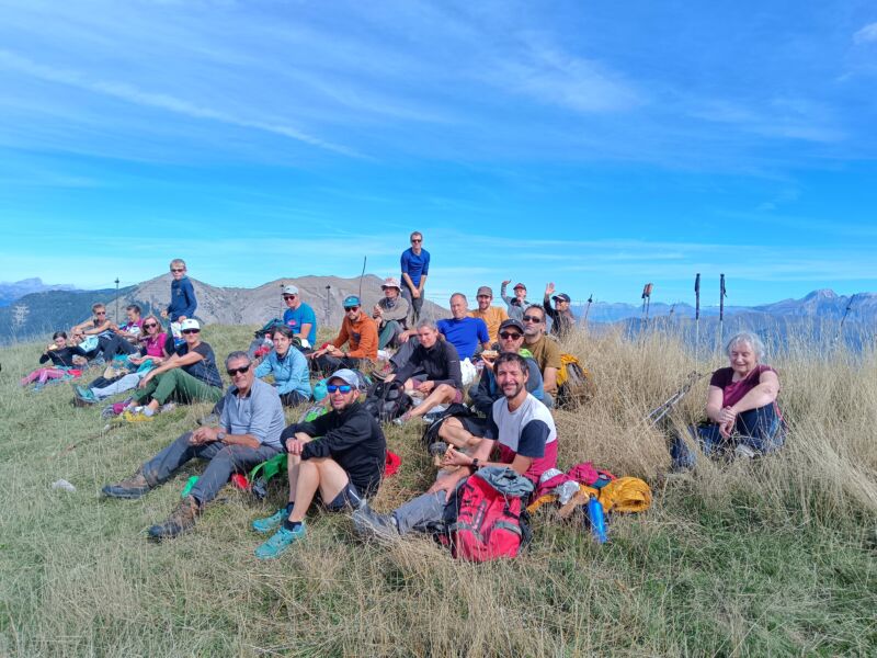Dimanche le soleil est présent dès le réveil et l’ensemble du groupe part directement du gîte pour faire une boucle débutant par le col de Vaunières où certains feront en variante la Pare, puis tout le monde se retrouve au sommet du Quigouret pour le pique-nique avant de redescendre au hameau.