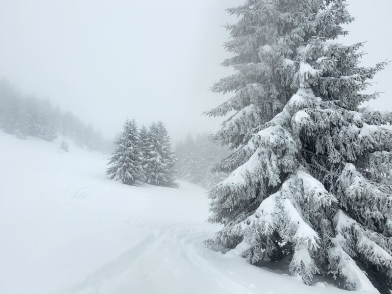 A partir de 1800m l’ambiance change , on voit le relief et la neige qui n’est plus travaillée par le vent devient excellente à skier .
