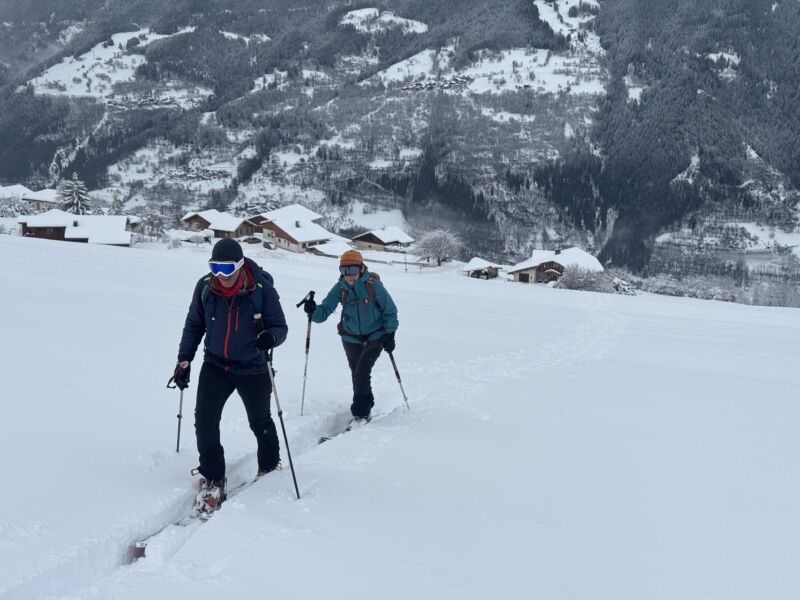 De retour aux Chapelles on n’hésite pas trop à remettre les peaux pour une dernière petite descente.