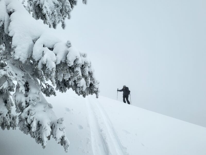 Une trace nous emmène sur la crête Nord du PSM, très travaillée par le vent.